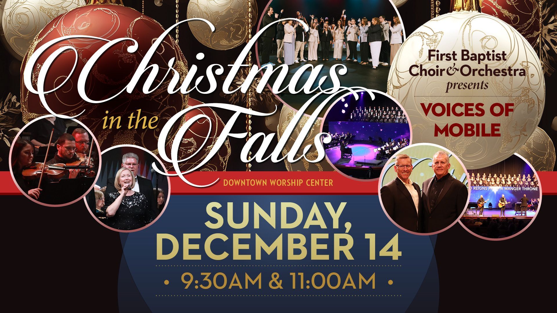 Christmas in the Falls, featuring the Voices of Mobile, is Sunday, December 14, at our Downtown Campus during the 9:30 and 11 a.m. services. Enjoy a powerful celebration of Jesus’ birth through Christ-centered music led by our Worship Choir and Orchestra, with the acclaimed Voices of Mobile from the University of Mobile. Admission is free, so invite your family and friends.